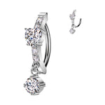 316L Surgical Steel Dangle Heart CZ CNC Set Hinged Clicker Hoop Belly Button Ring Navel Piercing Jewelry 14G 12mm - Sold Individually Material - 316L Surgical Steel Gauge - 14...