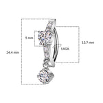 14G Dangle CNC CZ Heart Hinged Hoop Belly Button Ring 12mm