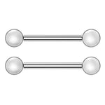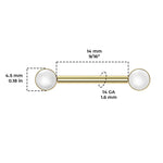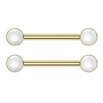 Front Facing White Pearl Nipple Barbell - Sold as Pair Material - F136 Implant Grade Titanium Gauge - 14 Gauge (1.6mm) Color - Silver, Gold Length - 9/16" Inch (14mm)...